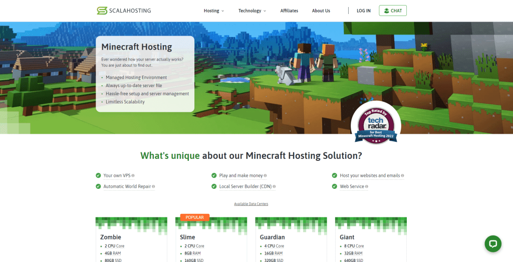 Scala Hosting offers a truly unique solution in the industry as one of the truly only dedicated Minecraft server hosting providers. Allowing you to generate a server for Minecraft on a VPS and have a solution tailored to Minecraft itself.